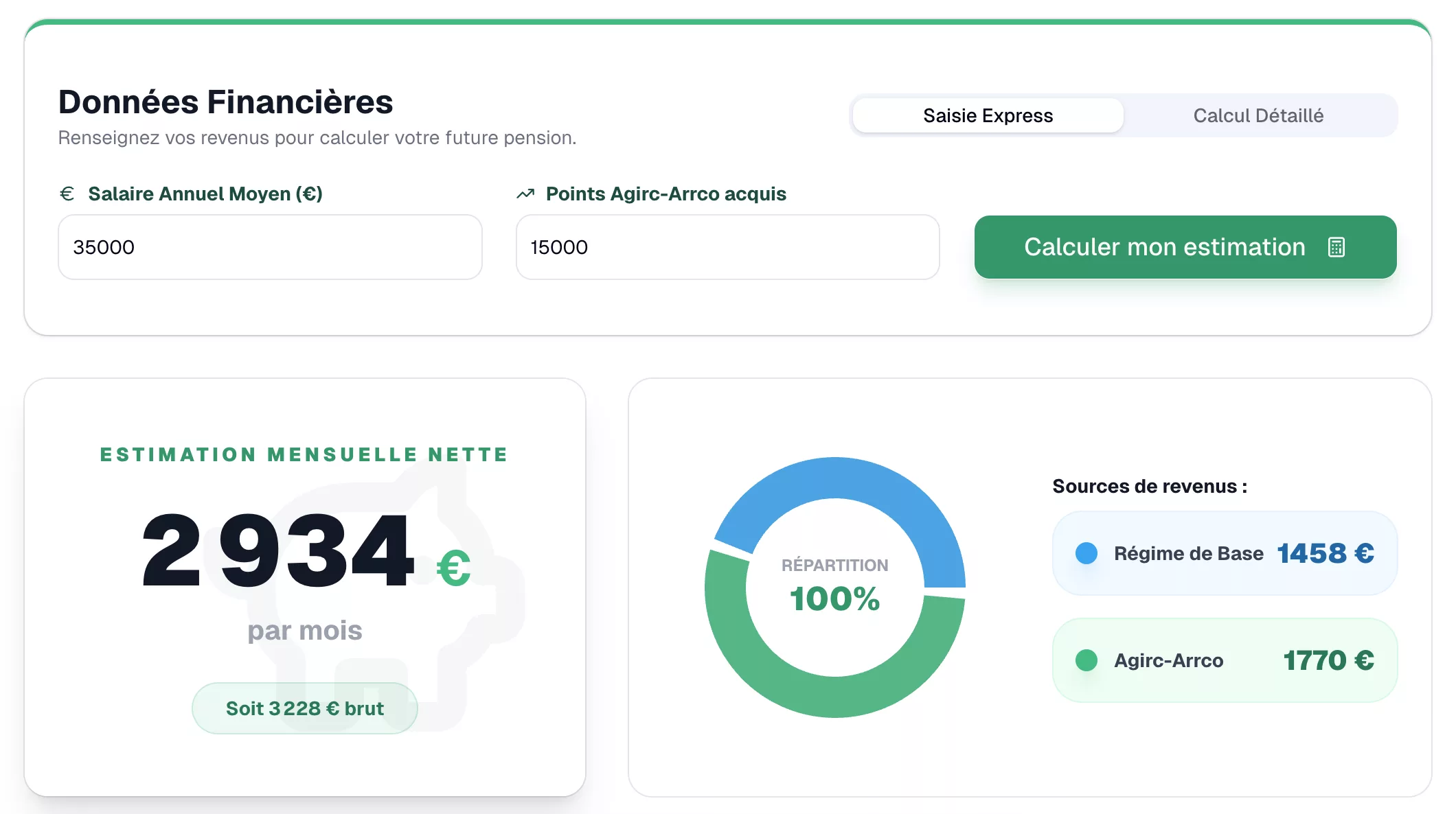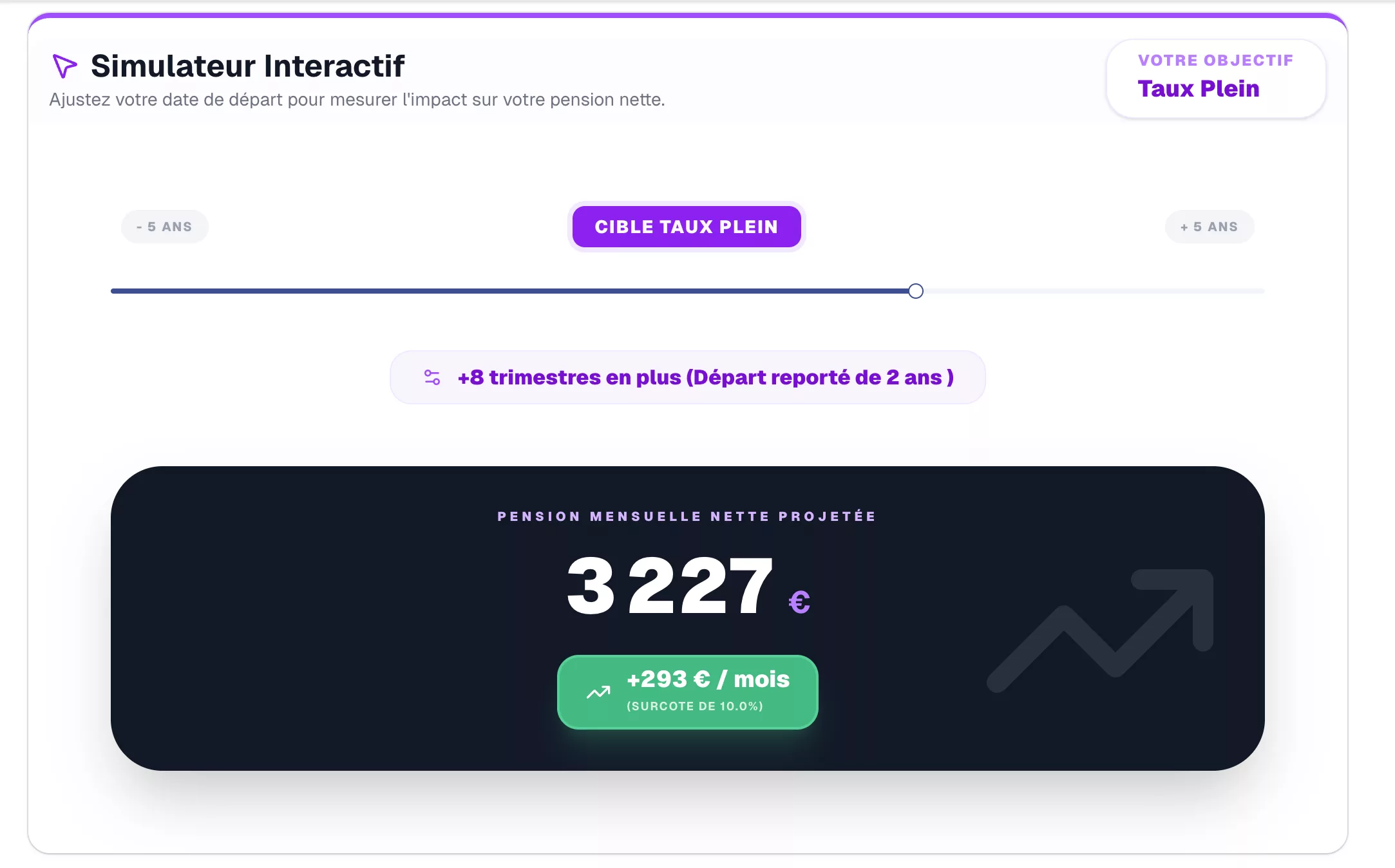 - Simulations précises (âge de départ, impact des options, fiscalité)